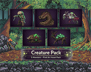 | Tags | 2D, Asset Pack, assets, creatures, Creepy, Dark Fantasy, Dark Humor, Monsters, Pixel Art |