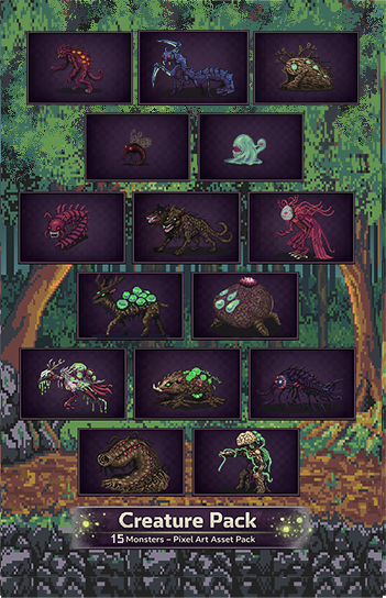 | Tags | 2D, Asset Pack, Creepy, Dark, Monsters, No AI, Pixel Art |